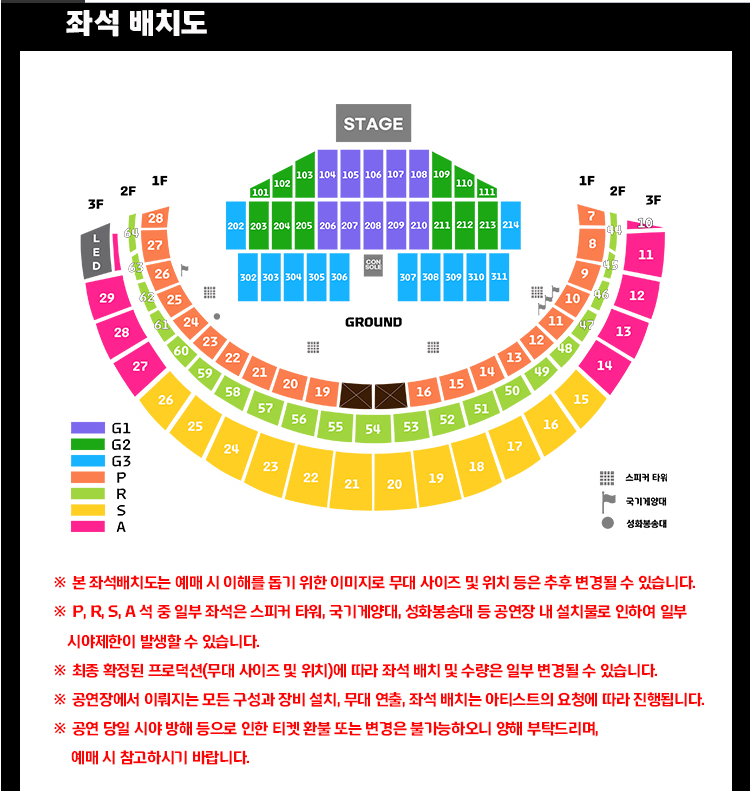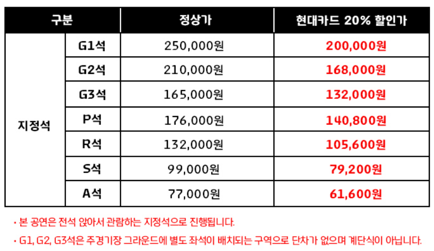 좌석배치도는 1층부터 3층까지로 이루어져 있습니다. 최대 가격이 25만원 선이며, 전석 자리가 지정되어 있는 지정좌석제로 운영됩니다.