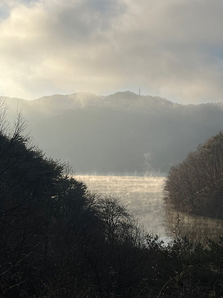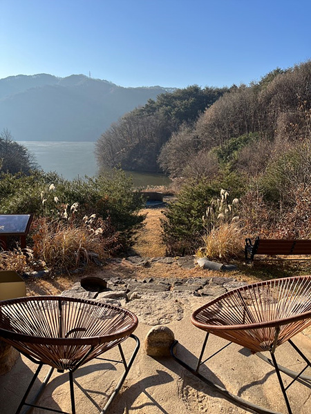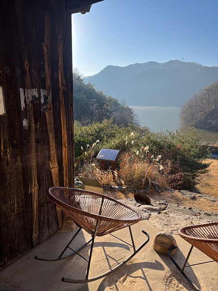 윤슬과 물안개를 감상할 수 있는 산책로: 계절별로 윤슬을 잘 볼 수 있는 시간대를 안내해주십니다. 지례예술촌 주변으로 산책로가 조성되어있어 조식을 먹고 한 바퀴 돌았습니다. 산책을 하면서 호수위로 빠르게 움직이는 물안개와 수시로 반짝거리는 윤슬을 감상할 수 있습니다. 숲길이다 보니 낙엽도 잔뜩 쌓여 겨울의 정취를 한껏 느낄 수있었습니다.