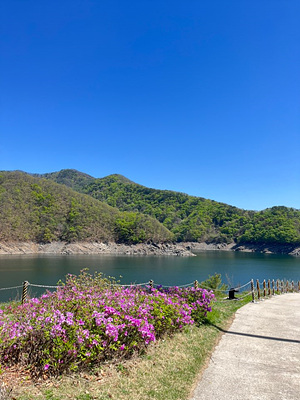 다소 오르막길이 있기는 하나 잘 걸을 수 있게 조성된 산책로입니다. 또한 옆으로 내려다보이는 강과 산세, 그리고 팔각정에서 내려다보는 풍경이 아름다워 소양강댐에 가신다면 한 번쯤 들려보시기 바랍니다. 보통 소양강댐 쪽에 가서 배를 타고 청평사에 많이 가신다고 들었고 추천을 받았었는데 제가 갔던 때에는 운항이 잠시 중단되어있어 가볼 수 없었습니다.